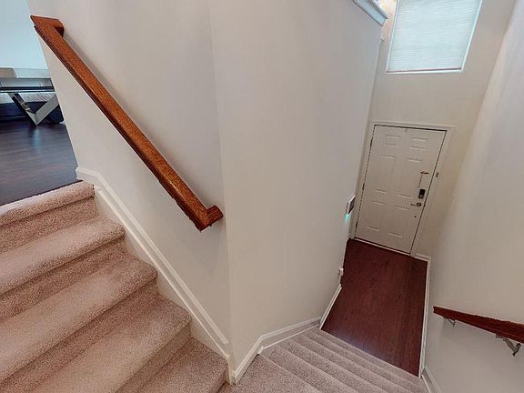 A must see 2107 sq ft freshly painted 3 bed 2 full bath 2 half bath Like New Townhouse with 2 car garage and double wide driveway. Great Size balcony with sliding door off of the kitchen and great size patio overlooking beautiful very private wooded area to enjoy summer evenings.Beautiful Hardwood Floors , Open layout ,Kitchen with ss appliances and granite top,upgraded light fixtures,garbage disposal,many closets . Master bedroom suite offers walkin closet with master bath ;double vanity,tub and shower. Development has great amenities :pool,clubhouse,gym,lounge area.Current HOA is $230 per month
