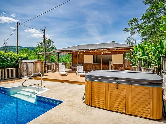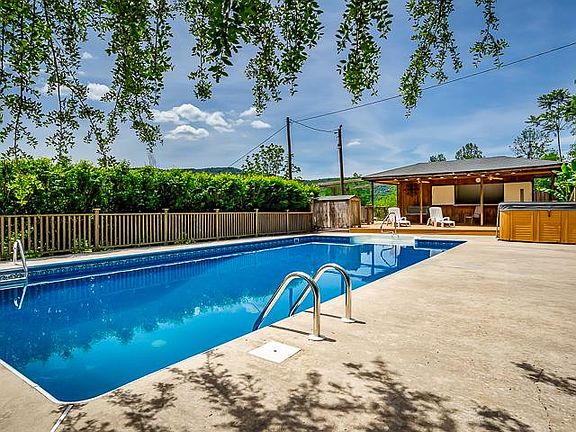 Private 2 story 4b/4b. 3554sf home on 4/27ac w/beautiful mountain views. Major reno completed in 2018/19. 2 mstr suites: 1 upstairs, 1 main flr along w/addl 2b/2b/ Family rm w/frplc, den, 3 car det garage, pole barn, fenced for horses. Home overlooks 8,000+sf entertainment ctr, featuring 16x32 in-ground pool, cabana w/kitchen, bar, 1/2 ba, 3 hot water showers, lounging deck, hot tub, sauna, firepit, etc. mins from Historic Beersheba Springs, market+more. Utility & well water.