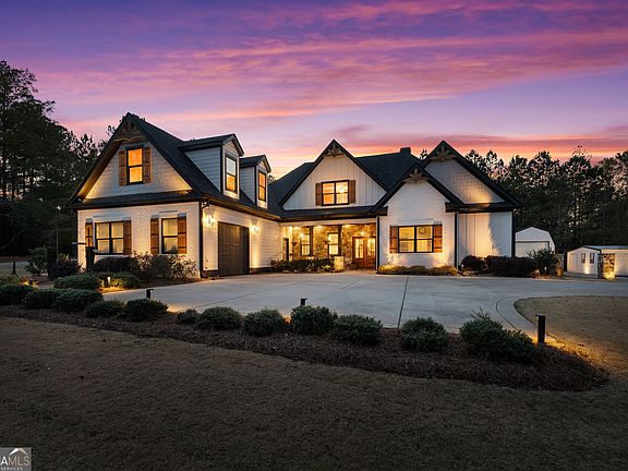 Where can you find the right-sized family home that is just a short golf cart ride to charming and historic downtown Senoia? You've just found it! Welcome to a truly remarkable, modern luxury home designed for both large scale entertaining and everyday comfort. Set on a private lot exceeding three and a half acres, this stunning residence offers space, sophistication, and thoughtful design at every turn. An endearing rocking chair front porch invites you inside, where enhanced architectural details immediately impress, including elegant coffered and wood-slatted ceilings and upscale finishes throughout. The expansive open concept living area is ideal for hosting, seamlessly connecting to a chef's kitchen that serves as the heart of the home. Featuring double kitchen quartz islands, a coffee bar, a built-in beverage and wine cooler, along with premium finishes, and a spacious walk-in pantry, this kitchen is perfectly equipped for gatherings both large and small. With five generously sized bedrooms and four full bathrooms, plus a private powder room, the layout provides comfort, privacy, and flexibility for family, guests, home office needs, and even serves as a potential multigenerational residence. The primary suite is a serene retreat, offering luxurious space and thoughtful design. The primary bathroom features a double vanity with an abundance of storage, an oversized shower, and a soaking tub that will help you relax your cares away! Step outside to enjoy the ultimate entertainer's dream: a covered back porch with a stacked stone fireplace, perfect for year-round enjoyment. Imagine enjoying ribs or brisket with the neighbors, or family game night...the expansive private grounds offer endless possibilities whether relaxing in nature, hosting outdoor events, or simply enjoying the peaceful surroundings. Additional standout features include covered RV parking with water and electricity, ideal for adventure enthusiasts or additional storage needs. This extraordinary property combines luxury, functionality, and privacy in a setting that feels both refined and welcoming. Don't miss this rare opportunity to own a home that truly has it all!