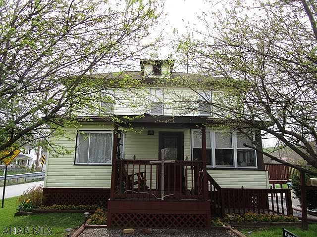 Very well maintained two-story home. Main level offers a living room, dining room, updated kitchen, den/office, full bath/laundry and sun room. Second level has two bedrooms and a sitting room. Full basement, updated mechanicals, well and public sewer. Asphalt driveway for multiple car off-street parking and two storage sheds. Front and rear covered porches, paver patio, above ground pool and deck. Nicely landscaped exterior and small stream at the rear of the lot.
