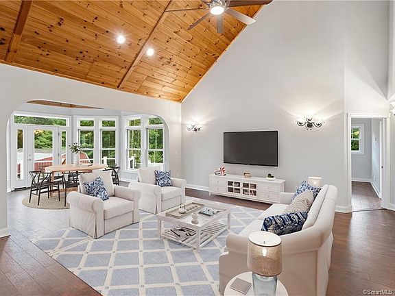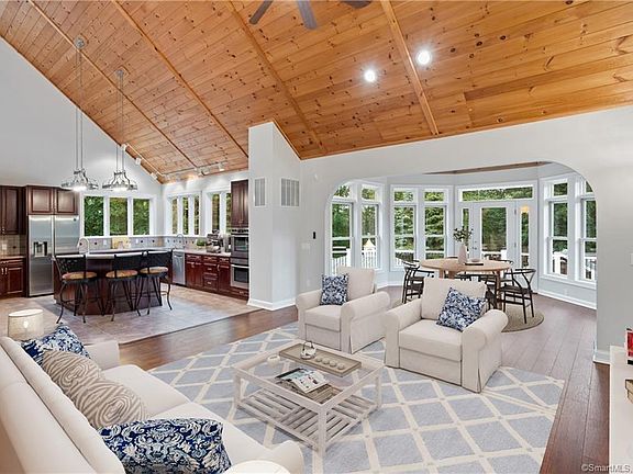 Beautiful custom construction just past the South Glastonbury town line! Truly open floor plan with entertaining space galore! First floor features chef's dream kitchen with stainless steel appliances opening to family room. Other features include formal dining room, 1st floor office, sun room, stylish wood vaulted ceilings, fresh paint, and beautiful floors throughout! First floor master suite with full bathroom offers air tub and stand up shower, walk in closet, and access to laundry offering the option for one floor living. Upstairs hosts two bedrooms, full bathroom with additional air tub, walk-in closet closet, and large unfinished attic space. Expansive maintenance free deck overlooking private backyard offers additional covered patio space below featuring fire pit and custom wood fired pizza oven, all accessible from walk-out basement. Additional entertainment space includes basement with media room, bar, and game room prepped and ready to be fully finished with additional full bathroom for even more living space! The fun doesn't end with top of the line Kloter Farms screened room with hot tub, two Kloter Farms sheds perfect to store landscaping items, and 1800 sqft barn made for the hobbyist, small business owner, in-law apartment or man cave - the possibilities are endless! Underground utilities, 400 amp electrical panel, radiant heating in all floors, central vac - no details missed in this turn-key home!