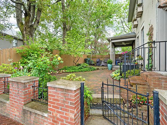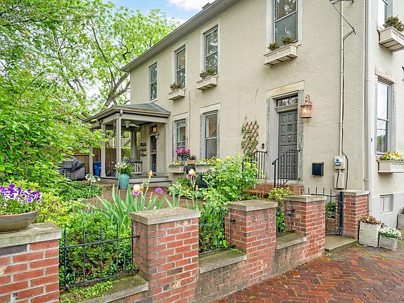 Simply charming 1870's 2 story home in German Village. Featuring: hardwood floors in living areas and bedrooms, flexible living spaces, ventless gas fireplace, desirable open floor plan, spacious eat-in kitchen with tons of storage, granite countertops and stainless steel appliances, 1st floor powder room. Upstairs: bright & airy north facing primary bedroom, spacious versatile loft space, guest bedroom, laundry closet with stacked washer & dryer and full bath with tub/shower. Outside: beautiful garden beds surround a large brick paver patio in fenced yard overlooking Sycamore Street and a covered porch. All of this and more! An amazing location in this historic neighborhood and a mere blocks from all it has to offer.