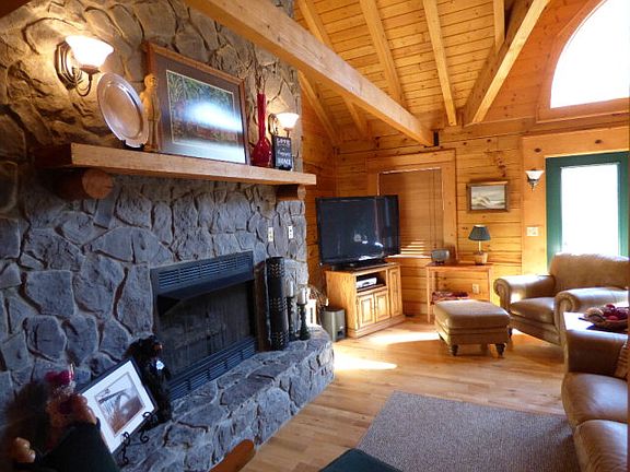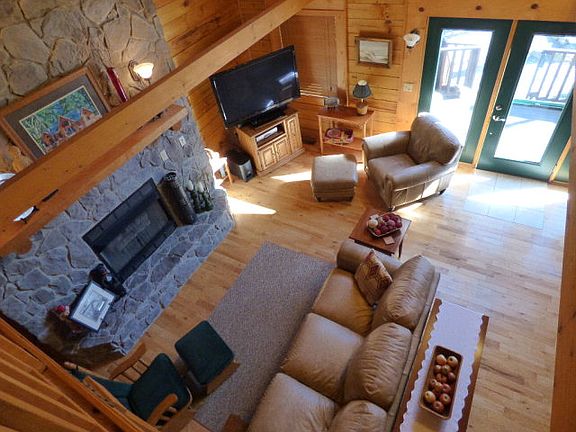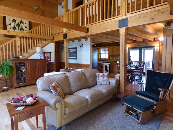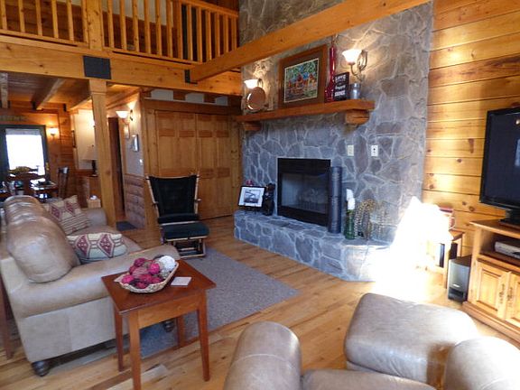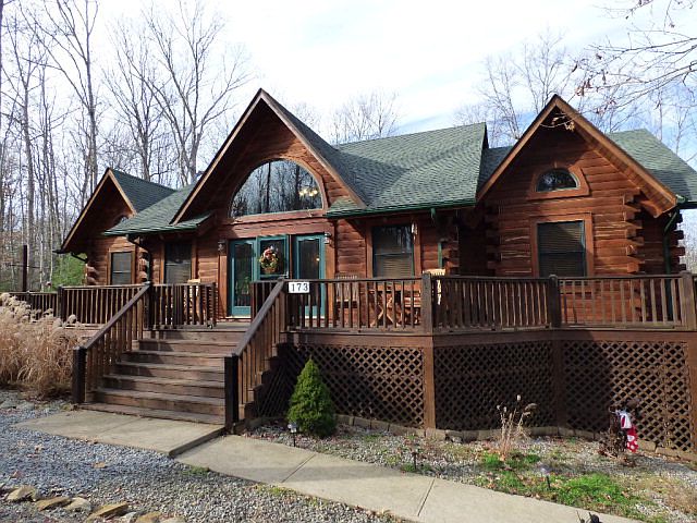 Beautiful 5 bedroom/4 bath log home situated on 1/2 acre, common property to right & rear, close to the front gate. Home features a spacious living room with hardwood floors, gas fireplace & natural lighting. Kitchen & breakfast area open to the expansive deck. Basement boasts a family room, bedroom, full bath & access to another deck with hot tub. Access to Suddenlink. Caters to outdoor living!