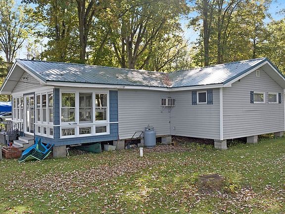 Offering a rare opportunity to own a private oasis on the western shores of Cross Lake. This charming cottage features an impressive 128 feet of prime lake frontage and has a nice large lot that is level and wide open to allow for entertaining, fun activities and all the toys. The parcel is ¾ of an acre and has a circular driveway for convenience. The ranch style cottage offers, the warmth of notty pine, an open floor plan, with kitchen and living room combination. There are 3 bedrooms and 1 bath. Improvements include a new steel roof, a new septic, and a lovely enclosed porch with breath taking views of the lake and land. This property comes fully furnished and equipped, including the dock and a shed. There are year-round homes on this private, well-maintained road, this too could become a year-round residence. Cross lake is known for beautiful sunsets, excellent fishing, and is connected to the NYS canal system. Don't miss out on this perfect get away that will provide your family with years of enjoyment and create lasting memories! Public records has 978 sq ft, but the enclosed porch adds an additional 250 sq ft, totaling 1228.