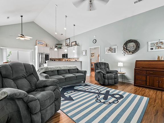 Welcome to this well-maintained 3 bedroom, 2 bathroom single-story home in the Silver Creek community of Socastee. Built in 2015, this home offers approximately 1,299 heated square feet and features a bright open floor plan with vaulted ceilings, creating a spacious and inviting feel. Inside, you'll find laminate and LVP flooring throughout (no carpet), a cozy gas fireplace, and a kitchen designed with soft close cabinets, tile backsplash, and stainless steel appliances. The split bedroom layout provides privacy, as well. The exterior offers a fenced back yard with an outdoor storage shed, perfect for extra storage or hobbies. Silver Creek residents enjoy access to a community pool and low monthly HOA Fees. Conveniently located near the airport, Hwy 31, shopping, dining, and the beach, this home combines comfort and convenience. Move-in ready, well-maintained, and priced to sell!