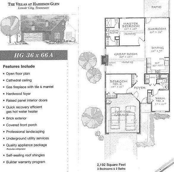 Only 2 remain! Make your choices now!! This OPEN floor plan, offers a spacious Master bedroom with master bath, 2 additional bedrooms and 1 bath, brick front, Low Maintenance, Open Kitchen, & Sunroom with Cathedral ceiling. Standard includes hardwood in foyer, carpet in great room, dining and bedrooms, vinyl in kitchen, sunroom, laundry and bathrooms. Minutes From Upscale Shopping, Dining, Medical Centers, West Knoxville, Ft. Loudon Lake and Marina, Great Golfing, and The Great Smoky Mtns