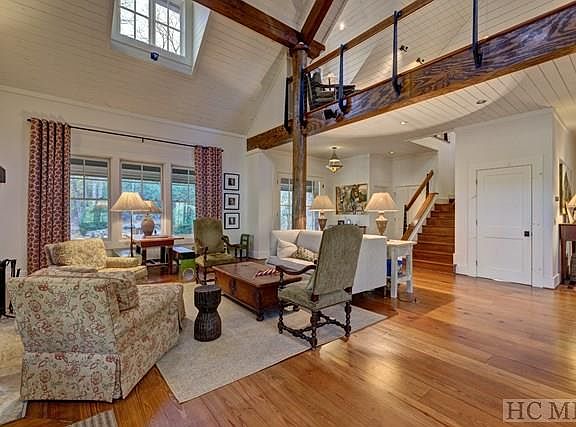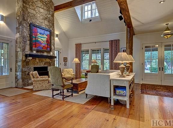 This Built for owner home has the style and appeal of today- yet the Norris Broyles architecture is timeless. Winding driveway leads up to a gracious "High Country Barn" with metal roof, poplar bark and stone detailing. Beautiful wide plank pine flooring at the entry carries through much of the home. A generous thirty-foot ceiling with dormer windows greet you upon entrance, non-fussy rooms evoke family gatherings with plenty of elbow room and lots of natural light provided by large doors and windows, as well as skylights. This home features three fireplaces (2 indoor, 1 outdoor) with multiple decks for outdoor living. Bonus sleeping room for children upstairs off one guest bedroom for young parents. Art/hobby workroom downstairs near the family den and fourth bedroom with a total living space of over 5,000 square feet - all the lower level rooms have doorways to the outside for easy access to the yard. Serene forested land assures complete privacy all around. Contiguous lake lot and cabin can be included in the sale.
