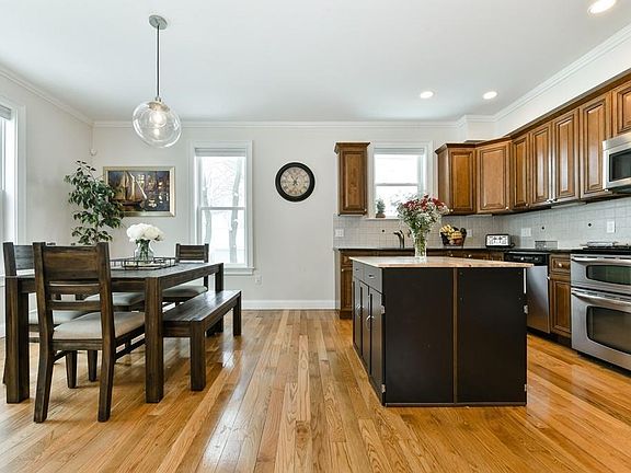 Settled on a beautiful park just steps to Melrose Center, this 3 bed/3.5 bath townhouse offers the best of both worlds: proximity and space! Built in 2011, this home lives like a single-family with four levels of living and two-car parking. The first floor is an open concept space with a newly renovated kitchen, tremendous 9' ceiling height and a half bath. The 2nd floor features two spacious bedrooms, one with an ensuite bath, a common bath and the laundry room. The third floor boasts a master suite with a wall of closets and an enormous master bathroom with a double vanity, stand-up shower and jacuzzi tub. The lower level space is perfect for a family room, media room or playroom! There is a fenced patio and Foss Park is directly across the street. The park has a playground, basketball court and baseball diamond. Melrose Center offers great restaurants, Starbucks, shops and a grocery store. Only a ½ mile to the Wyoming Hill Train Station and 1.5 miles to the Oak Grove T!