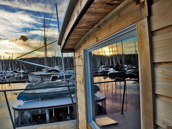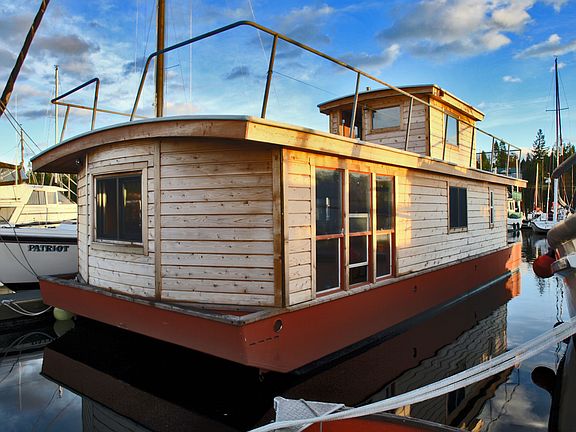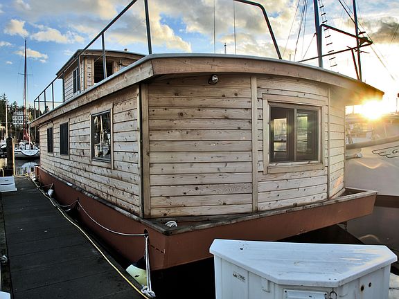 Use your creative ideas to finish this fabulous Houseboat named "The Owl" designed and built by shipwright P&T Fabrications. Built on a steel hull 16' X 45', this solidly constructed houseboat boasts lots of space, stability, outdoor living area and extra storage space in the open, fully painted cargo hull. Houseboat features 2 separate bedrooms, with an extra room that can be used as an office/bunk room for guests. Well thought out spaces featuring a large living area with high curved ceilings, kitchen open to living room, stubbed out for washer/dryer, and a 3/4 bath. Enjoy tall curved ceilings, lots of light, covered 6' X 16' entry deck and huge rooftop deck; an extremely well built houseboat. Motor mount, navigation lights all in place. Get the navigation station and motor mounted (you have till March 2015 to bring to Seattle). This houseboat will not qualify for the DPD Houseboat plaque, but can be a legal live-aboard vessel in Seattle, or keep it here in Port Hadlock and enjoy weekends (3 days per week allowed in this marina) in the magical waters of Port Hadlock Marina. Imagine... fishing, crabbing and the peace of being on the water. Waterfront you can put your toes in. Call listing broker for showing appointment and details. Slip rental $10.00 per foot x 45'.