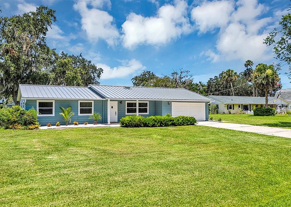 Let's get on the water! With this beautiful turn-key home, you'll be on the water in no time. No waiting at the boat ramp for you! Your private boat ramp means sunset cruises and early morning fishing is at your finger tips. This 3 bedroom, 1.5 bath home is move in ready with all NEW paint inside and out, Brand NEW 2023 Metal Roof, NEW Irrigation and landscaping, NEW Hurricane Impact Windows, NEWLY repaired sea wall, all NEWER mechanicals including AC, Water Heater, Electrical, and plumbing. You'll enjoy the outdoors, on one of the largest lots on the street at just over a half an acre and including over 150 feet on the canal! The garage is a whopping 32x20, so you can easily fit all the toys! Bring your golf cart, jet skis and your boats. Plenty of room to park in the garage and on the side of the house. Still have more? There is also a small shed for additional Storage! All you need is your belongings to make this home yours. Or if you're willing to share, make this home an income producing short-term rental! Centrally located just minutes to the local watering hole, grocery and all the festivities of New Smyrna Beach. By boat, your just a quick ride to Mosquito Lagoon, Disappearing Island and all the places in between. This Canal Front home is ready and waiting for its new owners, call today to make it yours!