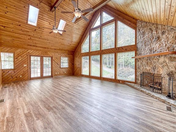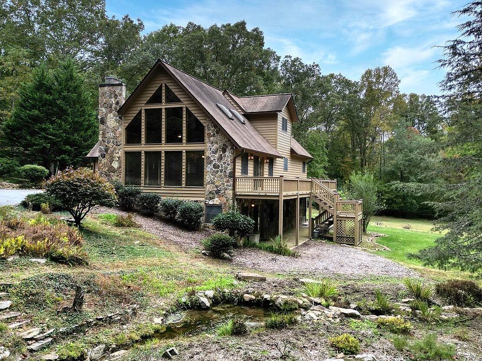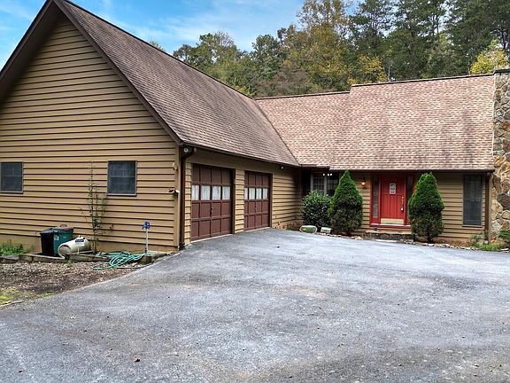Beautiful, custom built home with nearly 3 gentle laying acres in a very private setting only 5 miles from Downtown Blairsville. With over 3500 heated square feet, it has a master bedroom on the main floor and loft plus and bedroom and full bath in the full finished basement. Masonry fireplace on the main floor and a wood stove in basement, unique stone wall in kitchen, Anderson Windows, large deck overlooking the yard and water features. Artisan well, very nicely landscaped park like setting, storage building and attached 2 car garage.
