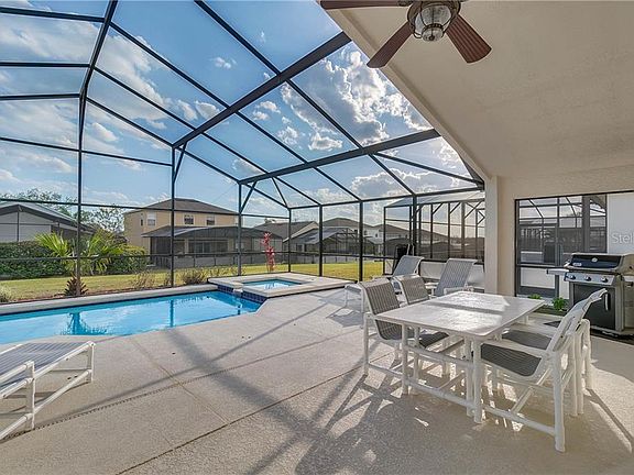 A beautiful 4 Bedroom, 3 Bath pool home in the gated community of Highgate. Pride of ownership shows in this barely lived in home, owners use this as a second home for themselves and has not been rented out otherwise. This home can be used as a full time residence or rented as a short term turnkey investment, as all furnishings stay. The open floor plan offers a large family room, with dining area and kitchenette. The spacious kitchen over looks the family room, which leads to the South facing pool, spa and extended pool deck, great space for entertaining. The spacious Master Suite offers sliding doors to the pool area, large shower, separate tub and dual sinks. Second bedroom has it's own bathroom and bedroom three and four share a Jack & Jill bathroom. A two car garage and laundry area complete this well laid out home with high ceilings and a beautiful welcome area. The community itself has a playground and tennis courts, the hoa fee covers the lawn maintenance and the gated entranceway. Located close to the 27/192, Disney,restaurants, shopping and all that Orlando has to offer. Call today for your own private tour as this well maintained home will not be on the market long. The A/C was replaced in 2015.