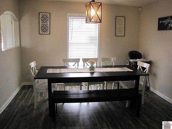 Looking for a nice home in north Marshall? This beautiful, well maintained home is conveniently located just about a mile from Sharpe Elementary, on a dead end street with great access to Paducah, Calvert City, and Draffenville. It's move in ready with updates such as newer luxury vinyl plank flooring and beautiful refrigerator. All appliances are black stainless. Open concept family area, split bedroom design. All on a 1 acre lot with a large fenced-in back yard and an outbuilding!