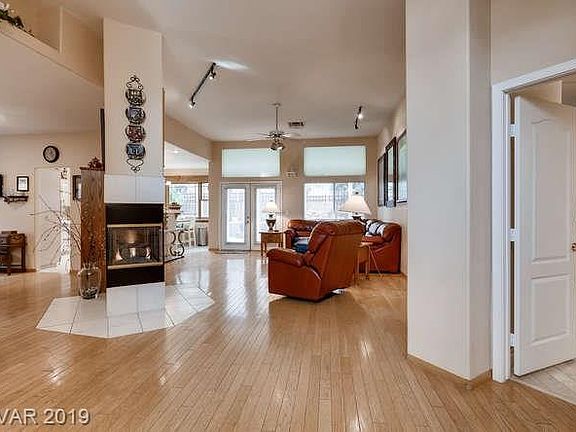 Beautiful gated one story with 3 car garage! 3 bedrooms, with beautiful upgraded master bedroom with fireplace, shutters, crown molding and custom walk in closet. 2nd bedroom with built in bookshelves, crown molding and custom closet. Kitchen has beautiful garden window overlooking backyard. 3 way fireplace in living room and dining/family room and 11' Ceilings throughout house. Large laundry room with cabinets and sink.