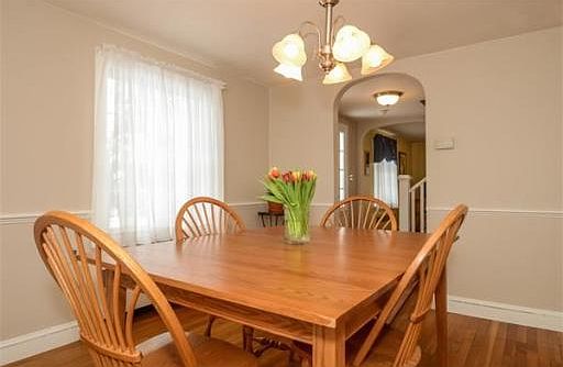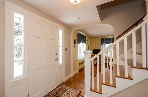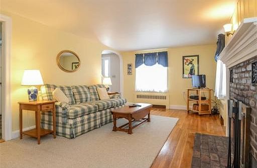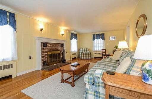 You will love the location of this beautifully remodeled Cape within short walk to train and convenient to all commuter routes. The ideal home for young professionals. Hardwood floors throughout. Light and fresh living room boasts a working fireplace with stunning custom mantel. Charming updated kitchen is efficiently designed with today's modern cook in mind including lots of storage solutions. Opening up to the kitchen is huge 3 season porch just perfect for entertaining. Two spacious bedrooms