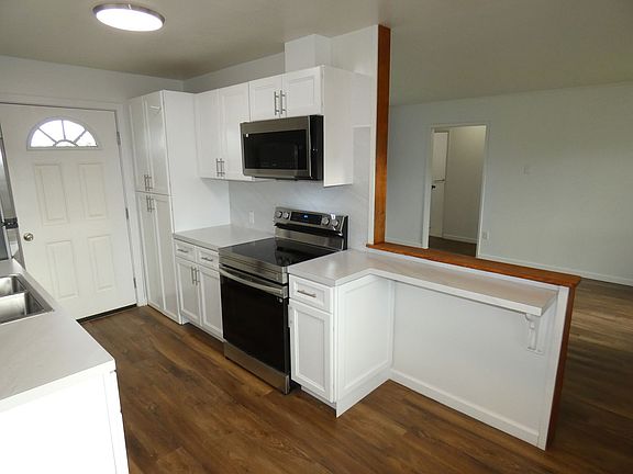 The cute 1 bedroom home is situated on the east side of Port Angeles in a quiet neighborhood. The inside features new floor coverings, remodeled bathroom and upgraded kitchen with stainless appliances. The heating system features new ductless heat pump and the windows have all been upgraded to vinyl. This should be an easy space to heat. The attention to detail shows in the quality of work on the inside. The outside features a fresh coat of paint and a large back yard. Landscape maintenance provided by owner. This is a no pet property. There are no laundry hook ups.