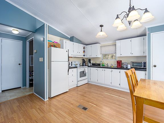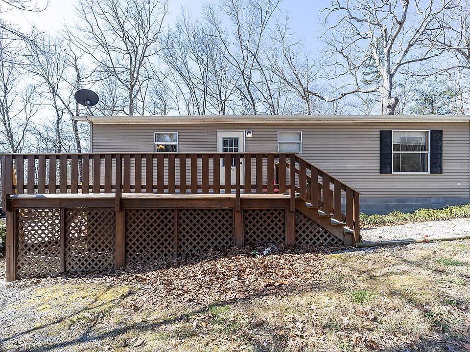 2 Bedroom, 2 Bath doublewide on permanent foundation located on .95 acre with well and septic. Septic is Peat Moss system. Living room with fireplace has gas logs, vaulted ceilings, kitchen with stove and refrigerator, electric furnace with heat pump and central air, walk- in closet, outbuilding and large rear deck with firepit.