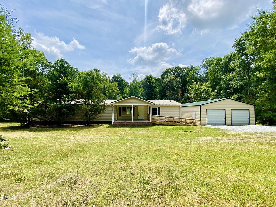 Nestled in a peaceful and quiet neighborhood, this freshly painted 4 bedroom 2 bath home with office is ready for move-in! 3.86 acres of country living with low taxes and so much potential! The 30x50 steel metal building garage plus 2 additional sheds offer a huge amount of storage! Open, bright, and spacious split floor plan with ample closets and fireplace. Large master bedroom has 2 walk in closets, private bathroom, and master sitting area/office/flex room. Beautiful 8 minute country drive to Roxboro and 40 minutes from Durham.