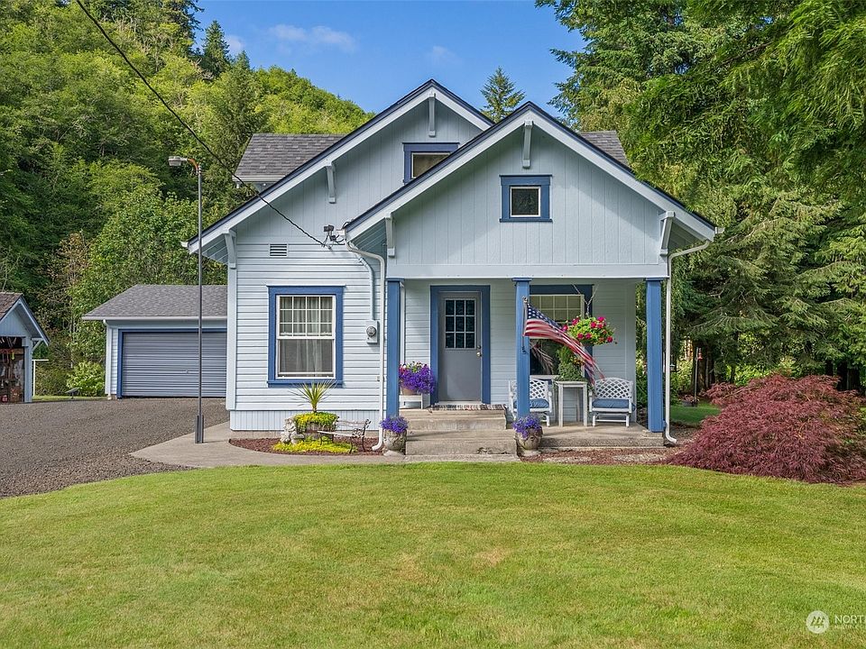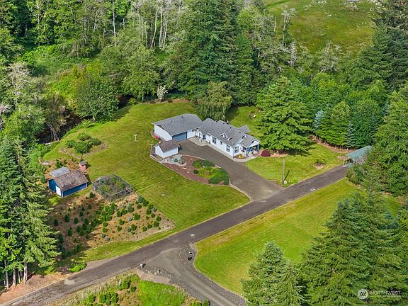 This charming 3-bedroom, 1.75-bathroom retreat is nestled on 7.14 acres,including 2 parcels & boasts 2,032 SF of living space,with stunning creek frontage!Enjoy mornings on the covered front porch.The spacious driveway leads to both an attached & detached garage providing ample parking & storage.Inside, you'll find a bright & inviting interior.A spacious bonus room provides additional living space.Enjoy time on the deck, perfect for outdoor entertaining or relaxing in nature of mature alder & fir trees.The barn is perfect for storage or animal use. Enjoy fresh raspberries, blueberries, and apples from your own bushes & trees.With RV parking available, this property truly has it all. Make this serene and versatile property your forever home!