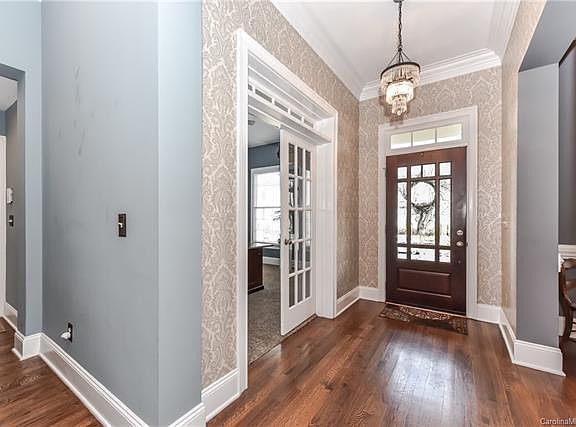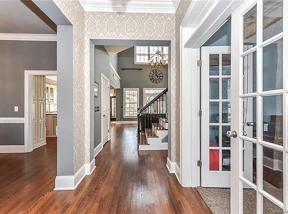 If you ever wanted to own the cutest house in the neighborhood now is your chance! Covered rocking chair frt porch. Frt door w/ beveled glass & transom window enters ongleaming hardwood floors. Heavy moulding t/o! 2" blinds, open floor plan, custom chandeliers! Main floor office has French door access & ceiling fan. Kitchen is open to 2-sty great room w/ stone fireplace surround to ceiling! Kitchen has staggered, raised panel cabinets w/ moulding & light rail for under cabinet lighting. Lg island w/ seating & pendant lights in custom ceiling inlay. Gas range, tile back splash, pantry. Owner ste on main floor w/ dual closets w/ organizers, en suite bath w/ split vanities, corner soaking tub, lg shower, tile floor & surrounds. Up wood tread staircase w/ wrought iron pickets. There is a large bedroom/bonus room w/ a powder room and access to an additional bonus/media room w/ a wet bar. 3 guest rooms share hall bath. Covered patio w/ ceiling fan, & wood burning fireplace in fenced yard.