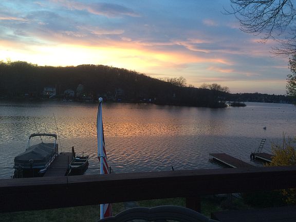 WOW - location offers city water, sewer & natural gas! Level lot front to back. Fenced yard w/deck, dock & finished walk-out basement. hardwood flooring, updated kitchen, wood fireplace, sunset views! Spacious living room w/fireplace, hardwood under carpet, slider leads to deck. Formal dining rm w/hardwood flooring. Kitchen w/new flooring, appliances, granite counters & eat-in custom breakfast bar! 2nd floor offers full guest bath, two bedrms w/hardwood floors and spacious master w/hardwood flooring, walk-in closet and all new stylish master bath! Attached garage leads to finished lower level walk-out to patio. Convenient location, minutes to NJ transit & major routes & shops, low taxes, well maintained.
