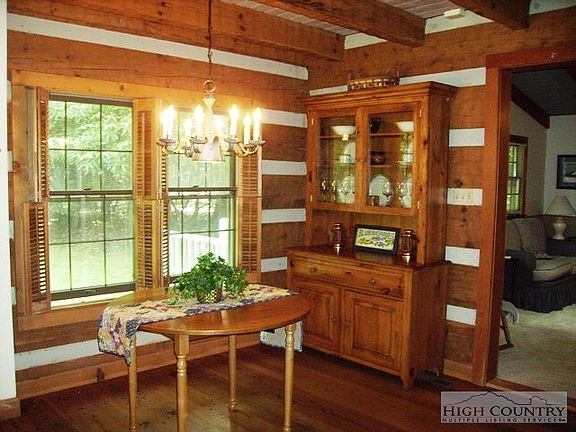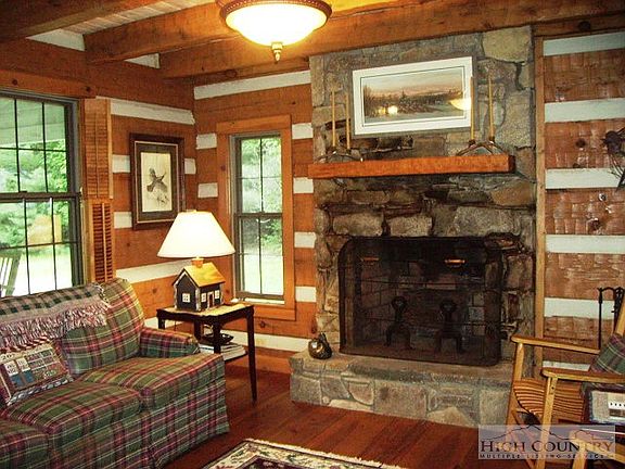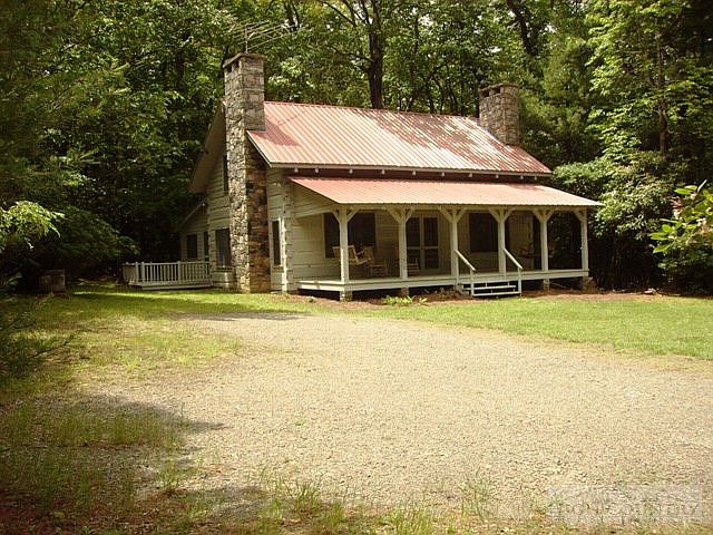Wonderfully private & secluded, beautiful log cabin is surrounded by gorgeous woods. Large greatroom/rock fireplace & reclaimed heart of pine floors, spacious dining area & large kitchen. Romantic mastersuite/rock fireplace. Large family room/vaulted ceiling/skylights. Upstairs are 2 large bedrooms & bath. Rocking chair front porch, open side deck, and neat log outbuilding. MUST SEE TO APPRECIATE!