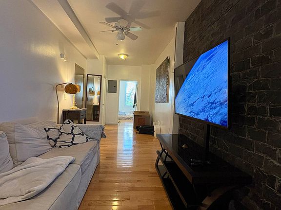 Spacious two bedrooms, with windows everywhere and closets! Each bedroom will fit queen-sized beds plus a desk! An amazing living room will fit lots of Furniture. Stone accents decorate the living room wall, and the kitchen features a ceiling fan and an island with extra cabinet space. Great layout on this amazing pre-war, well-kept two-bedroom apartment, right next to the Williamsburg Bridge and J M Z Marcy Ave stop and a walk to the L train at the Bedford Ave Stop! Rent includes heat and hot and cold water bills. Sorry, not a pet-friendly building. the moving date would be from June 1st 2025 When signing the lease, the tenant is responsible for paying 1 month's security deposit, 1st month's rent, and 1 month's rent for the broker fee.