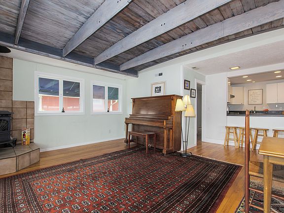 - RoomLivingRoomFeatures: Beamed Ceilings, Deck, Hardwood Floors