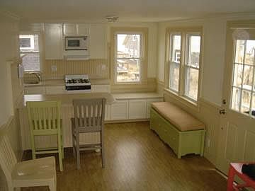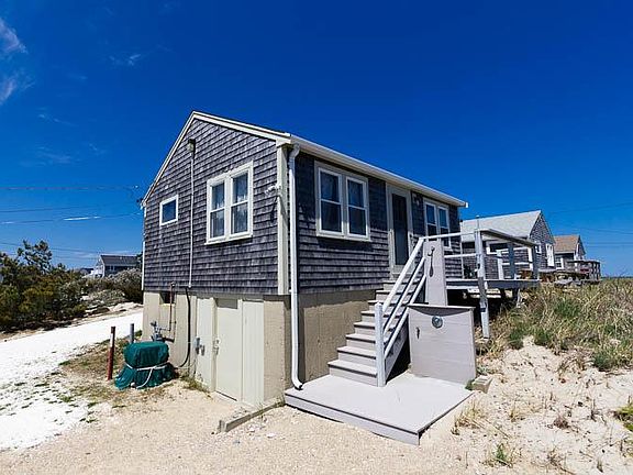 Updated modern cottage with wood floors, soft painted colors on the walls and a modern kitchen with a breakfast bar. L shaped sofa in the living area and nice lighting. 32-inch flat panel TV with DVD, full Cable TV (with HBO), phone and high-speed Internet access. Includes an updated bathroom and central air conditioning. Views of both Tidal Marsh and Cape Cod Bay. Lovely corner nook to relax and enjoy the salt air. Enjoy the outdoor deck, outside shower and Adirondack chairs in sandy sitting area. Nice Weber Gas BBQ grill and picnic table too. Cottage is located on the ocean side of the street only 40 paces to private beach. Bedrooms have a double bed in one and a set of bunks plus an extra twin in the second. This cottage does have a basement area where the laundry is.
