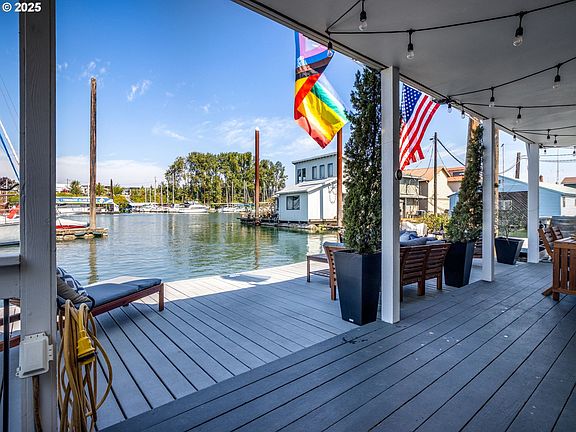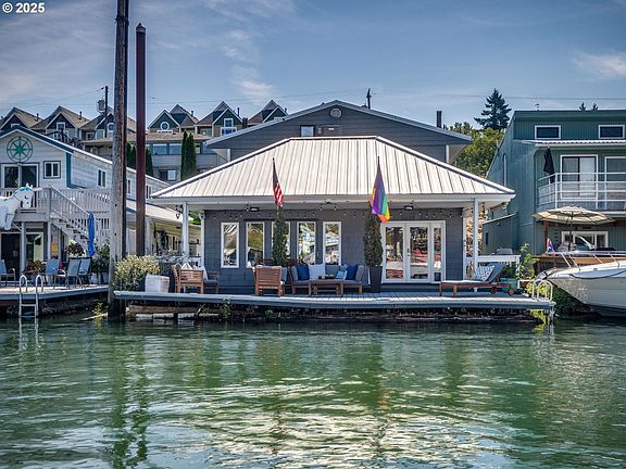 Live in Paradise on a floating home. 1st FLOOR PRIMARY BEDROOM AND BATHROOM. Updated, remodeled and charming. Lots of storage. 2 decks. 3 bedrooms, 2 full baths. Great kitchen for cooking and entertaining with granite countertops, lots of cabinets and counter space, kitchen eat-in bar with seating for 4 stools; Front loading washer full-size washer and dryer. Rare end-corner slip with open view across the river to see the fun at The Island Cafe. The views of sunrise and sunsets are magical. Located in the tight-knit Bridgeton neighborhood, where neighbors can know each other and residents can host "Soup Nights" at each others' floating homes or the landed-homes on the street. Golf and yacht clubs down the street; near shopping and restaurants. Extra storage in valued exterior closet. Lots of room to sit on deck with friends to entertain; in winter watch the Christmas Ships parades up close and in summer watch the boat activity and the new Smile Boat Parade. Watch river otters, beaver, ducks, herons and the occasional sea lion. Fishing off the dock is ok. With a 36' wide dock, you can dock your boat, jetski, paddle boards and canoe at your front doorstep. Bike routes closeby. Grassy field on Bridgeton is a favorite people-gathering and dog-gathering (on leash) space. Enjoy some Paradise on the river with lots to do and see or just sit and enjoy the view! 2 owner parking spaces near east ramp.Furniture and tvs are negotiable.