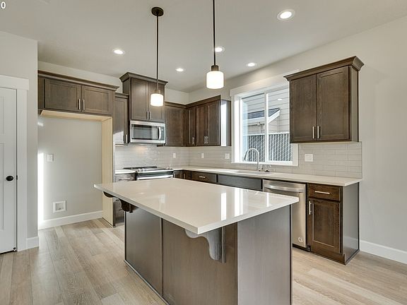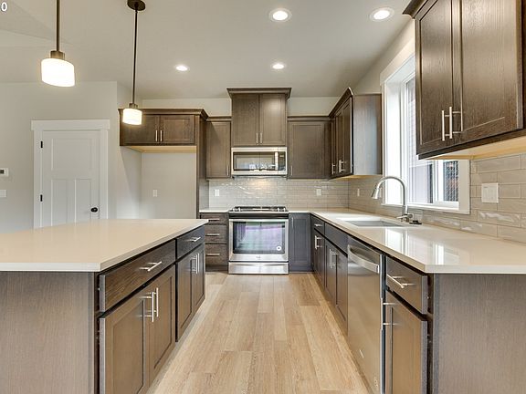 OPEN every weekend 1-4! Great room floor plan with 3 bedrooms and 2 baths Kitchen has upgraded appliances, quartz counters, island and pantry. Vaulted great room, master bedroom and 3rd bedroom. Master with walk in closet and double sinks in bath. Photos are for example only.