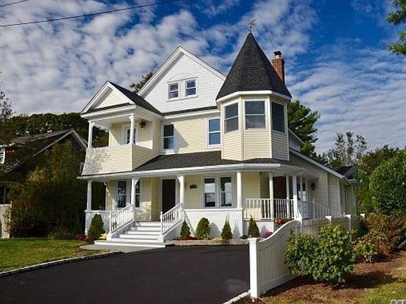 Breathtaking restored Victorian in quiet, picturesque South Amityville. Wood trim and beautiful hardwood floors through out 10 rooms, 5 bedrooms, 2 balconies, grand turret, classic period parlor/foyer, formal living rm w/frpl, formal dining rm, granite and ss eik. Front porch, back deck and detached garage. Energetic boating and waterside community. Within walking distance of Amityville beach, yacht Clubs and the village shops and restaurants.