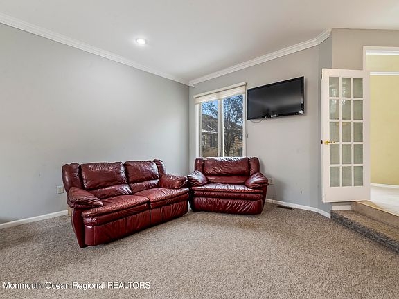 Welcome to the largest model in beautiful Beau Ridge. This CARRARA model boasts 5 bedrms,3 1/2 bths. A princess suite on the third level. A two story entry. The stepdown Liv. rm. flows to a formal din. rm. for gatherings. An open concept kit. w/ Corian countertops, disposal & breakfast bar allows for a spacious feel. Enjoy the stately Fam. Rm w/ gas frplc. which makes any evening warm & cozy. This home is designed to accommodate an elite living style inside & out. The wrap around deck allows a private area for entertaining & just relaxing. The maintenance free exterior, paver driveway and walks adorn this properties elegance. Newer 5 zone Furnace, A/C. HWH 70+ Gal. Location, location, location.....commuters dream, 5 minutes to the GSP, close to major roads & Jersey Shore. Nearby Shopping, Excellent School System. Beau Ridge Club House w/Pool and Tennis are only a few of the amenities, a must see!