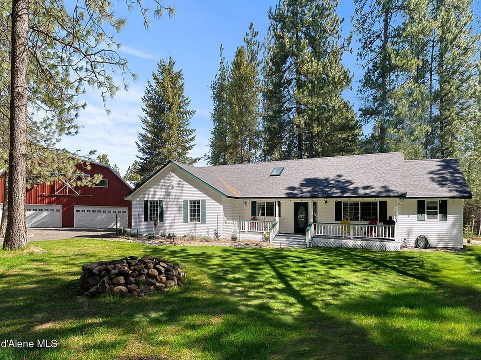 1402sf MAIN HOUSE ~ 60x50 HEATED SHOP/BARN ~ You'll love this setup; SHOP/BARN: radiant in-floor heating, parking for (4) full size trucks, RV/trailer/boat parking, workshop, oversized bathroom; MAIN HOUSE: great floor plan, awash in natural light, well cared for inside and out; 3rd bedroom configuration also works well as an office or extension of the living area; house roofing is new and all appliances are new; 40x18 CARPORT/COVERED RV PARKING; includes a 1000g propane tank; setting is peaceful and beautiful, wooded but with the undergrowth mostly cleared; feels like country yet just 10 minutes to the Athol Super 1 & Hwy 95