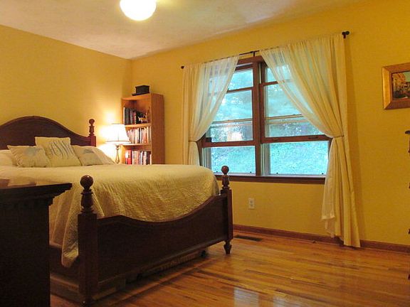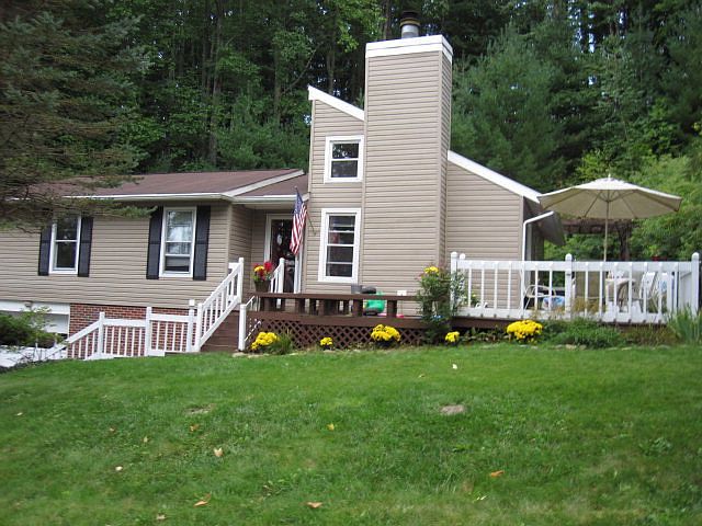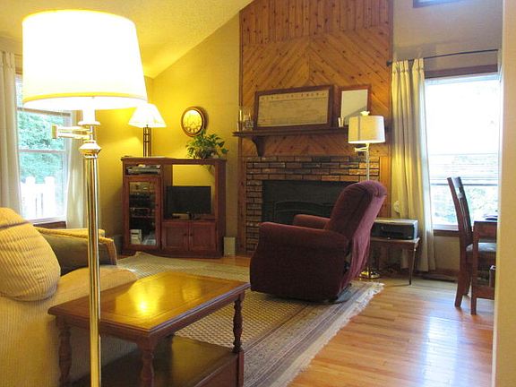 Very well maintained - attractive with open floor plan, large wrap-around deck with hot tub, gas propane fireplace in living room, extra lot with property, lots of privacy, new heat pump, new refrigerator and water heater, roof 7 years old, new windows in all but bedrooms