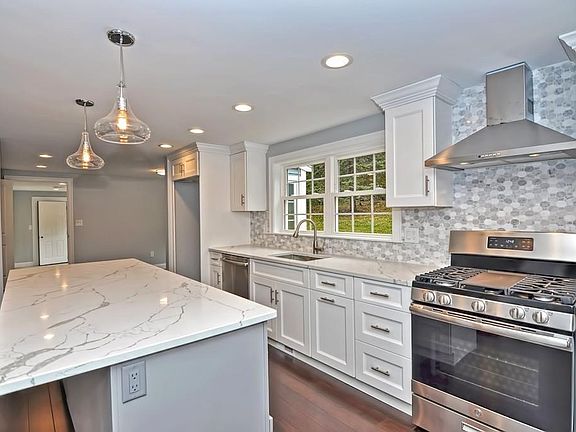 Stunningly, Gut Renovated In 2019! Brand New Single Family Home w/ 6 Good Size Bedrooms; 4 Full Baths; 2-Car-Garage; and In-Ground Heated Pool. Main Entrance w/ Double Doors. 1st Floor is Hardwood, throughout; Huge, Gorgeous Kitchen, with Quartz Counter; Island: perfect to enjoy breakfast or chatting w/ the cook; SS Appliances; & New Cabinets. Good Size Living Room. Dining Room w/ Slider to Backyard. Bedroom w/ Double Closet. Bathroom: Porcelain Titled Floors; Sink & Tiled Shower. Tiled & Bright Enclosed Heated Mudroom for Backpacks/ boots. 2nd Floor: Bath w/ double vanity & Tiled Tub; 2 Big Size Bedrooms; Master Bedroom: Featuring a Walk-in Closet; Full Bath w/ Double Vanity & a Stunning oversized Shower. Washer & Dryer Hookup. 3rd Floor: 2 Bedrooms & 1 Full Bath w/ Tiled Shower & Porcelain Floors. Brand New Electrical, Plumbing, Roof, Exterior Siding, Inside Walls, & Doors. All New Recessed & Light Fixtures throughout the House. New Patio. Oasis w/ Pool & Huge Front and Backyards.