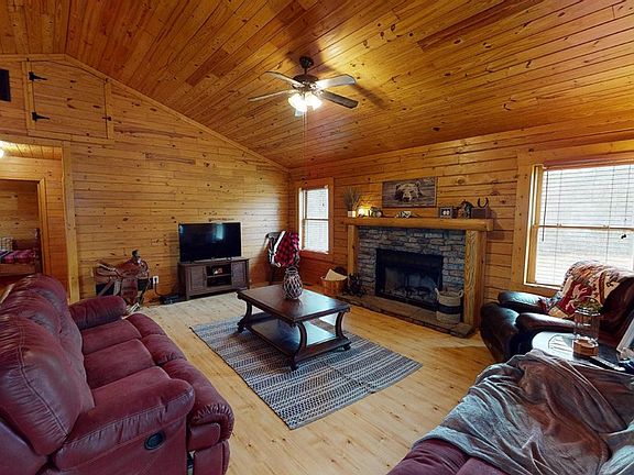 Looking for a Farm?? This 1755 sqft ranch style home has 2 bedrooms 2 and 1/2 baths, sunroom and small bonus room. Small bonus room could easily work as a nursery or toddler bedroom. Sunroom could also easily be converted to a bedroom as well. Interior is open with grand vaulted ceiling showing off tongue and groove pine from the floor to the top of the ceiling. Exterior of home has vinyl siding, 1 year old central hvac, huge front porch, metal roof, 9.99 acres with fenced pasture and a small pond. Home is located on a dead end road with plenty of privacy. This property is in the USDA financing district. Mount Zion School District k-12.