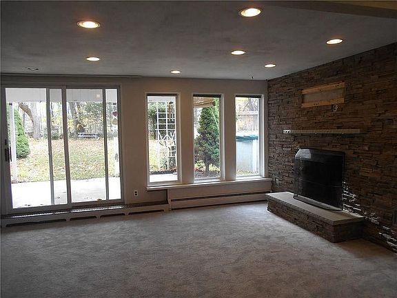 3 bedroom, 1.5 bath Split Level situated on a great lot that backs to Greece Canal Park! There will never be any neighbors behind you. The sunlight shines in the 20 Ft Great Room With Fireplace, special area above mantle with setup for flat TV. Wired for Greenlight and Spectrum. Features newer Carpeting in great room. Sliding Glass Door to Covered Patio. Additional 10x17 ft area off Great room ideal for Office ,Computer etc... All Bedrooms, Living and Dining Rooms offer original hardwood flooring underneath newer carpeting. First Floor 1/2 Bath has new flooring. New in 2019 completely fenced back yard with 5ft high chain link and 2 access gates. Beautiful flagstone in front entrance. 2-car attached garage with door openers. New in 2021 stainless gas range/oven with center griddle. Newer stainless dishwasher, Stainless Steel side-by-side refrigerator with ice/water feature. Additional countertop and floor cabinets added to kitchen for more functionality. Hot-water radiant heat with separate controls for three zones. Garage, shed and covered patio have electricity. Basement laundry - washer and gas dryer stay with the house. Property SOLD "AS IS". Min. to Wegmans, malls and expressway. Property is permitted for an 18' pool.