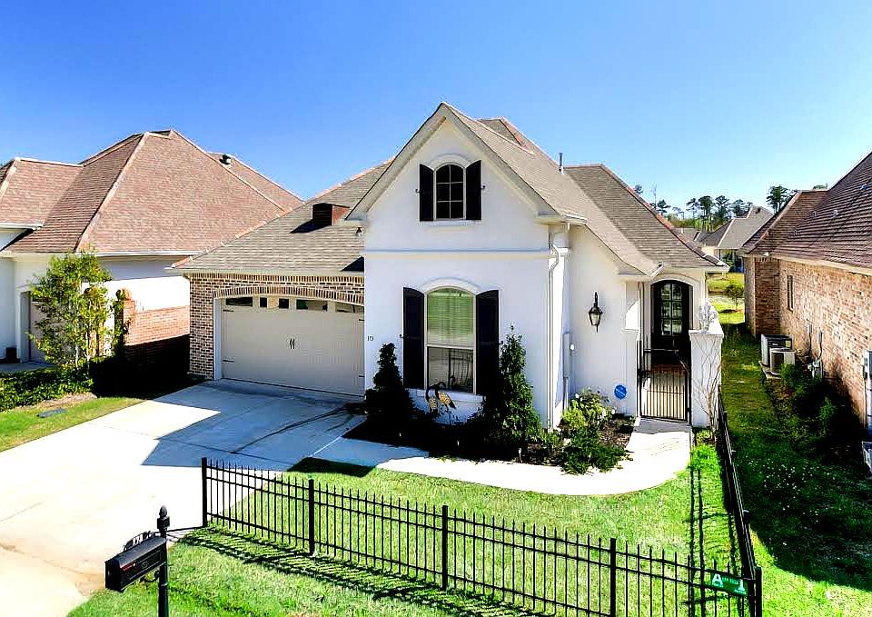 Gorgeous garden home in beautiful Bedico Creek. Has beautiful iron fencing front and back. Good Closets and nice size patio that is covered on the back of home. Views of a small lake.