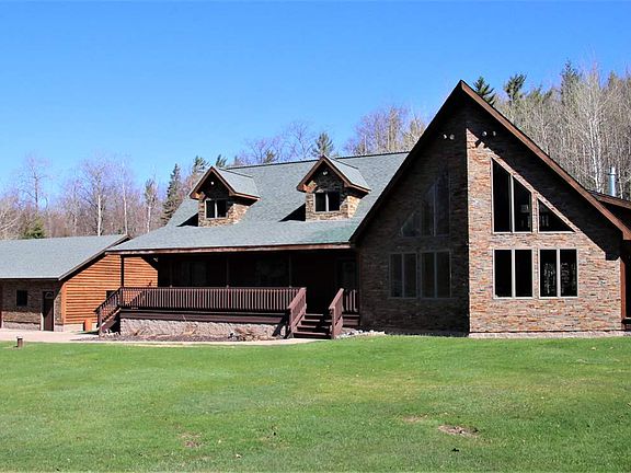 Stunning custom home that reminds you of Colorado, yet only 10 minutes from Marquette! This exquisite 4 bedroom single-family home sits on 40 acres of hardwood and pine (forest) with its own spring fed pond. Home is designed with beautiful T & G paneling, gleaming oak floors for the warm cozy quiet ambiance. Living room has a beautiful stone gas fire place surrounded by large windows for viewing the picturesque setting. Newly remodeled kitchen with maple cabinets and beautiful granite countertops. Large dining room area adjacent to the kitchen is perfect for family gatherings and with double French doors that lead to one of two 36' covered porches. First level has 3 bedrooms, one that can be used as the Master bedroom complete with full bath. A maple staircase leads up the large loft area which overlooks the great room. Second floor contains a massive master 36x16 bedroom offers plenty of closet space, a full bath with spa tub and an abundance of natural light. The entire home is designed with an efficient radiant in-floor heating system so you never need to worry about cold feet. In addition to the elaborate home there is a 28x40 heated, detached oversized 2+ car garage located next to the house for your convenience. A 40ft X 60ft pole barn with concrete floors including a large insulated workshop. This home is definitely very unique so make sure you do not pass up this opportunity.