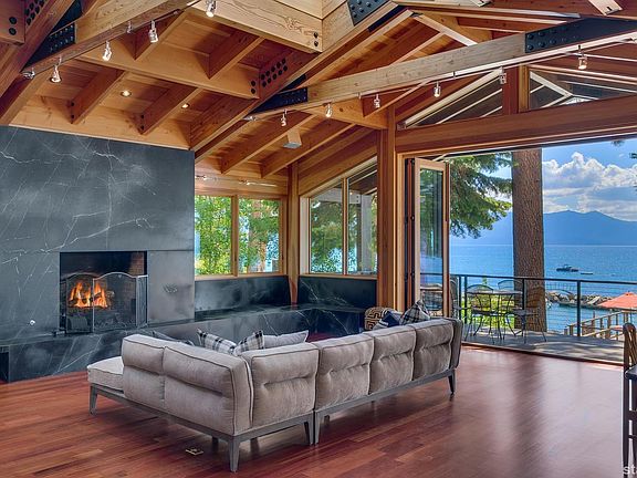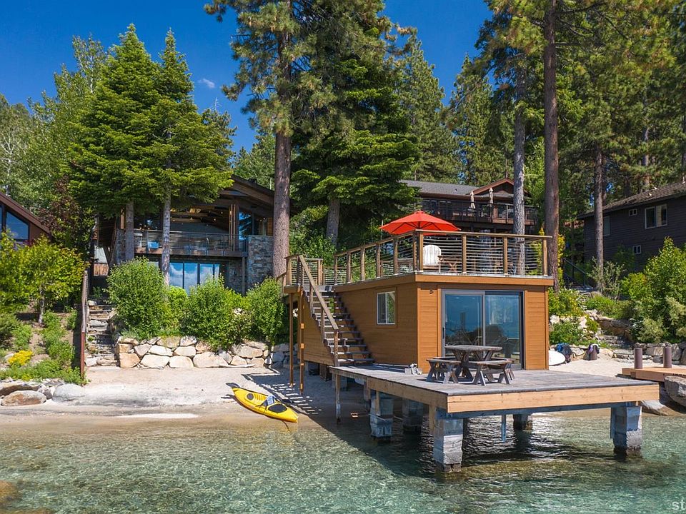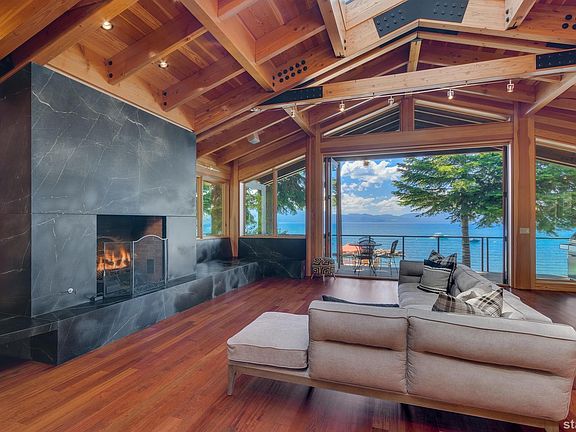 Timelessly designed for year-round lakefront living at its most luxurious, this 4,522sf move-in ready, mountain contemporary home was built w/attention to detail and professional workmanship throughout. One of the very few Nevada lakefront offerings with a private cabana/deck/short pier combo, sandy beach, and buoy. This home features two expansive great rooms, 4 bedrooms on entry level, 3 full baths, 1 half bath, wet bar, back lawn area, covered patios, beach cabana w/view deck, heated drive and generator.