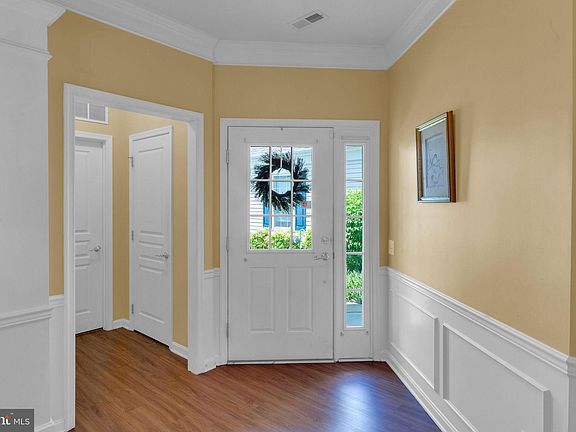 Welcome to Traditions at Hamilton Crossing. Peaceful, one level living that is also convenient to restaurants, shopping, highways and trains. The front gardens have recently been professionally landscaped offering color and texture to the adjoining the front walkway. An angled front entry foyer leads you past a formal dining room and eat-in kitchen to a dramatic great room with cathedral ceilings, moldings and luxury vinyl plank flooring. An adjoining rear sunroom, or office, with ceramic floor, has double sliding doors to a rear, semiprivate and partially fenced, patio. The heart of the home is the well-designed eat-in kitchen with pass through to the formal dining room High cabinets and granite counters set off the appliances - gas range, built-in microwave new dishwasher and French door refrigerator. AND there is still plenty of space for an eat-in table too. The primary suite, at the rear of the unit for quiet and privacy offers window views of trees and greenery. The attached bath offers a long vanity with double sinks, a private room has the shower and toilet. Just off the bath is a very large walk-in closet. The second bedroom (den or office) is at the front of the unit offers privacy and is adjacent to the main hallway bath with tub and shower. (This BR has brand new, neutral carpeting) The laundry room has W/D and a soaking sink. there is space for shelving and an access panel to the attic area. There is a coat closet located between the front and garage entries. The one car attached garage has inside entry to the foyer and has a utility room with HVAC & HW, and some room for storage.