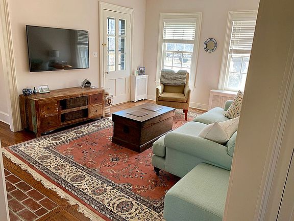 Quintessential New England farmhouse with impeccable renovations and wrap around porch in an elegant setting behind a picket fence. Located in Lower Easton which was described by the New York Times as the "black pearl of Fairfield County." Architectural features of this sun-filled home include back-to-back fireplaces, large cased openings, 8 9 ceilings, custom millwork and built-ins. High-end kitchen includes Wolf Gas Range and Sub-Zero. Hardwood flooring throughout, Marvin Divided Light Windows, all newer electrical, HVAC, plumbing, and lighting. Baths have elegant finishes including Carrera Marble, Waterworks and Barber Wilson fixtures. Private, level backyard is just under 1 acre with views of mature trees, stone patio and a quiet neighborhood on the other side. Rare trifecta of Natural Gas, City Water and Central Air. Award winning schools. Easton is home to over twenty working farms, yet is minutes to Fairfield & Westport. Easy commute to New York City.