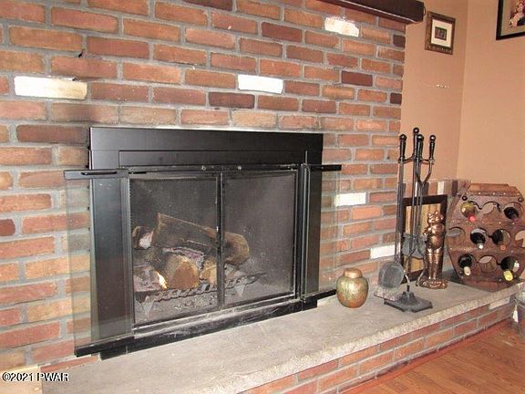 • Fireplace Desc.: Brick Faced, Living Room, Fireplace, Wood