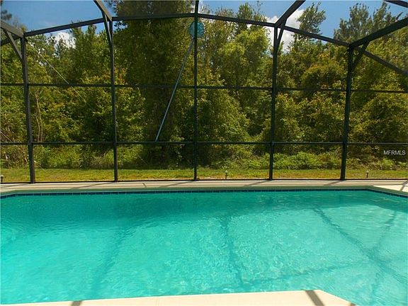 Enjoy the peaceful wooded view from your SOUTH facing pool deck! 5 bedroom 3 bath pool home is waiting for you, and ready to move in. Close to I4, Reunion and Championsgate, just minutes to shopping and restaurants, yet still peaceful and tranquil. This home boasts dual master bedrooms, with three other bedrooms. It sleeps twelve, so there is room for everyone. Currently used as a vacation home, so it is offered furnished, and if the new owner would like, there may be bookings to convey, Garage game room for those "stay at home" days. Sparkling pool is private, and overlooks conservation, so no rear neighbors.