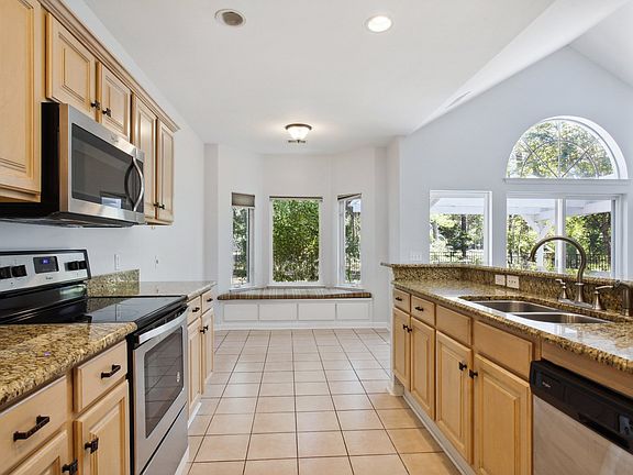 This beautiful, unfurnished 3 bedroom/2 bath home is in the highly desired Rose Hill community! The living room features a cathedral ceiling and dining/flex room. There's a welcoming eat-in kitchen with granite countertops and a lovely bay window with seating. The large master bedroom, with triple tray ceiling, is wonderful place to relax after using the jetted tub in the bath. The tiled back patio, with a pergola that overlooks the lagoon and golf course, is the perfect place to unwind. The home also has a fenced-in back yard!