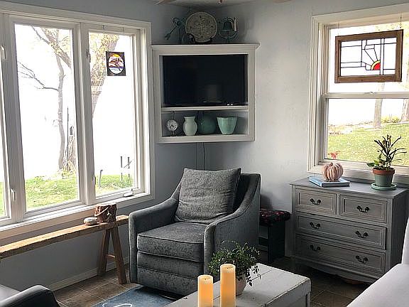 Year round cottage/home on the bay (50 feet of frontage) 3 miles north of Dyckesville. Spectacular sunsets and wildlife. Charming interior with 3 bedrooms, gas forced heat and central AC. Underground electrical service - roof 3 years old. Two storage sheds and patio with fire pit . A must see!