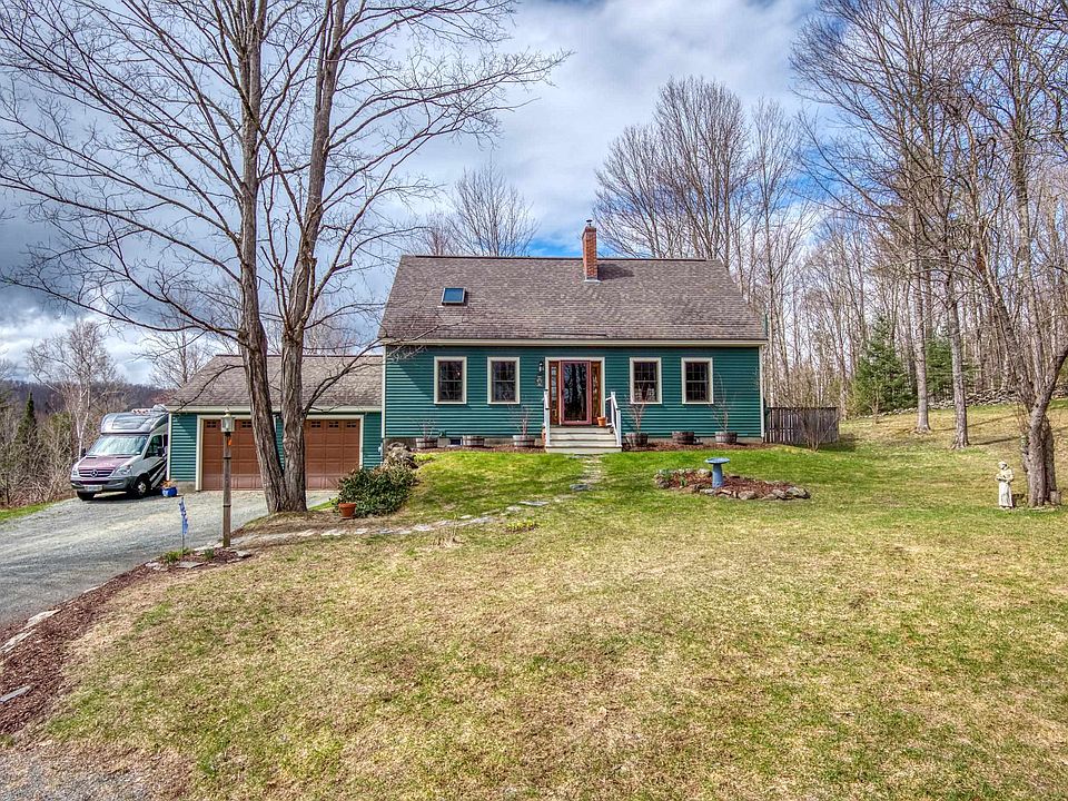 Up a dirt road on the outskirts of town, nestled in the trees & surrounded w/rock walls is where you call home. Pulling in to the 2-car garage, you turn off the engine & a sense of calm pours over you. Entering into the large mudroom, you put your bag in the den where you wash your hands in the 3/4 bath before heading upstairs. Climbing the stairs you are welcomed by lots of natural light into a spacious living room featuring the pellet stove & view to the back deck & yard w/gorgeous views. Turning the corner you notice the table is set for dinner & you can smell homemade food coming from the kitchen. You love the island in the middle as it's a great place to sit & talk while putting the finis touches on the meal. The large pantry has ample space for everything you could need & great area for storing smaller appliances, too. The 1/2 bath w/laundry is convenient to the kitchen as well making chores seem effortless. Before dinner, you go upstairs to the primary suite w/full bath & open the door to the large walk-in closet to pull out comfy clothes. You pass through the loft area where you love to read & glance into the guest bedroom to see it neat & tidy before going back to the main level. You look forward to playing in the yard & maintaining the gardens you've worked hard to create over the years. The greenhouse is perfect for seedlings and the sheds have ample storage space. At the end of the road is where the snowmobile trail & hiking trails are. You love this home!