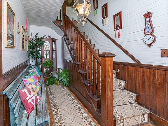 WHAT A COOL REMODELED FARM HOUSE! Enjoy a relaxing swing on the wrap around front porch or the serenity of the country from your rear deck gazebo. Spacious yet cozy kitchen has tile floor, farm sink, gas-log fireplace and large granite island with gas cooktop and vent hood. Breakfast area and additional bar seating area. Main level Primary BR has fireplace and bath with stand alone tub and large walk-in shower. Classic wood floors throughout the home. Replacement windows. Updated plumbing, wiring and insulation. Additional building off the rear deck has electricity, heat and air. Perfect for a studio, office or playroom. Other storage buildings on the property also.