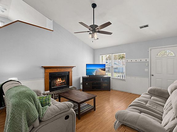 This ranch style home, nestled in the mature community of Oak Creek in Goose Creek, features an inviting front porch, a large driveway, and rain gutters. Inside, the open floor plan features soaring, vaulted ceilings, plenty of storage space, glistening wood flooring, and a wood-burning fireplace in the living room. Enjoy creating delicious home-cooked meals in the eat-in kitchen, which features plenty of cabinetry and countertop space. Refrigerator to convey with an acceptable offer and as part of the contract. The massive first-floor owner's suite features wood flooring, a ceiling fan, walk-in closet, and en-suite. The two secondary bedrooms are also on the first floor along with a shared full bathroom.Upstairs, you will find a loft flex space that could be converted to a fourth bedroom. There is a spacious laundry / mudroom located to the rear of the home that has a multitude of usage options! Enjoy the large deck overlooking the large fenced backyard, with a storage shed that has electric power. Oak Creek is a well-established community with a play park, walking trails, and is with-in walking distance to many new shopping and dining options. Come see your new home today!